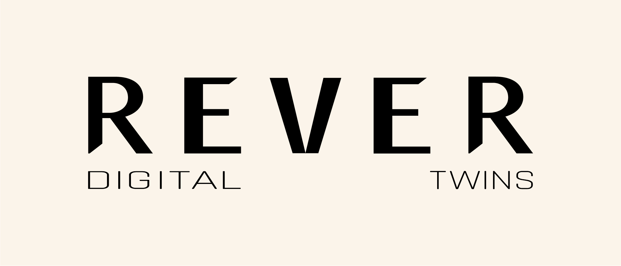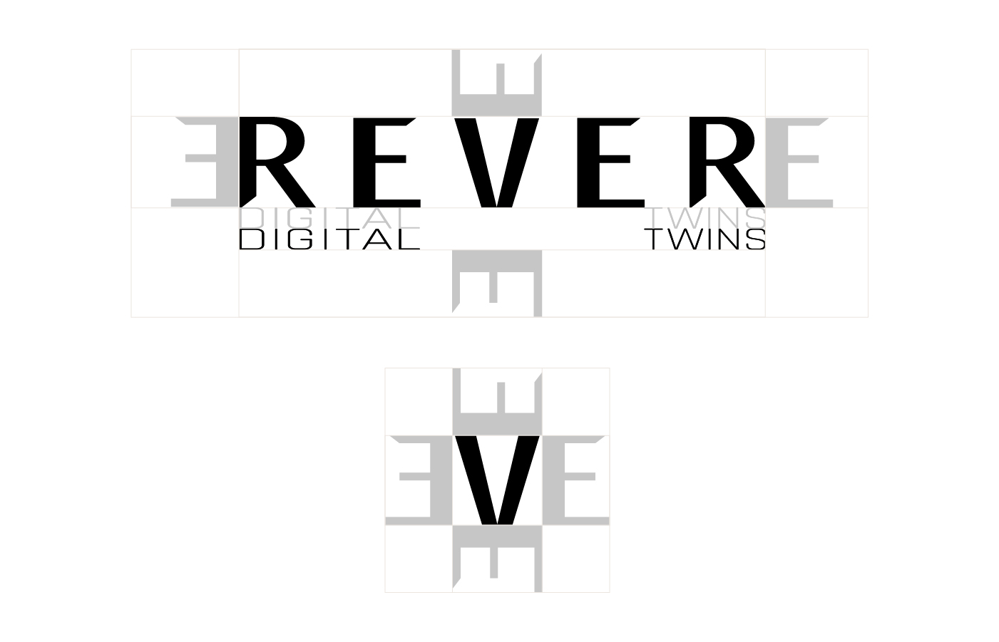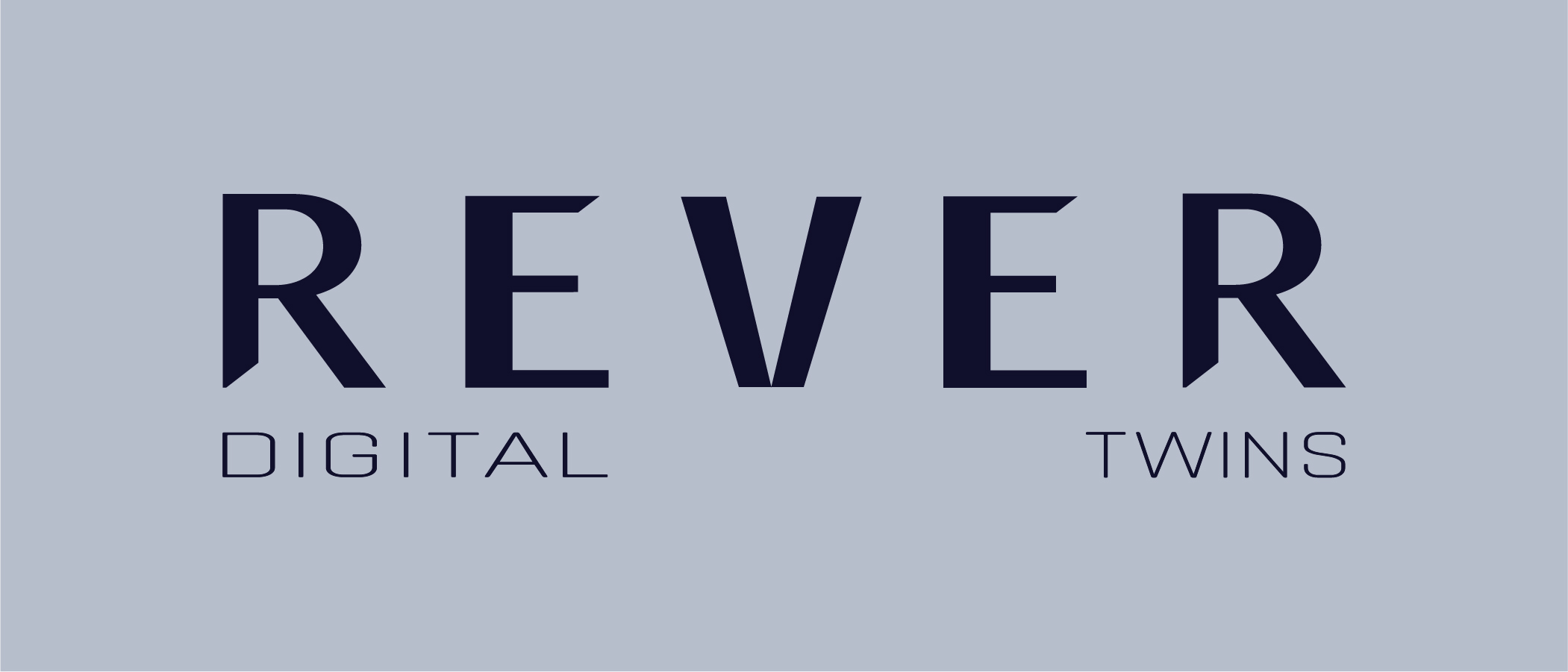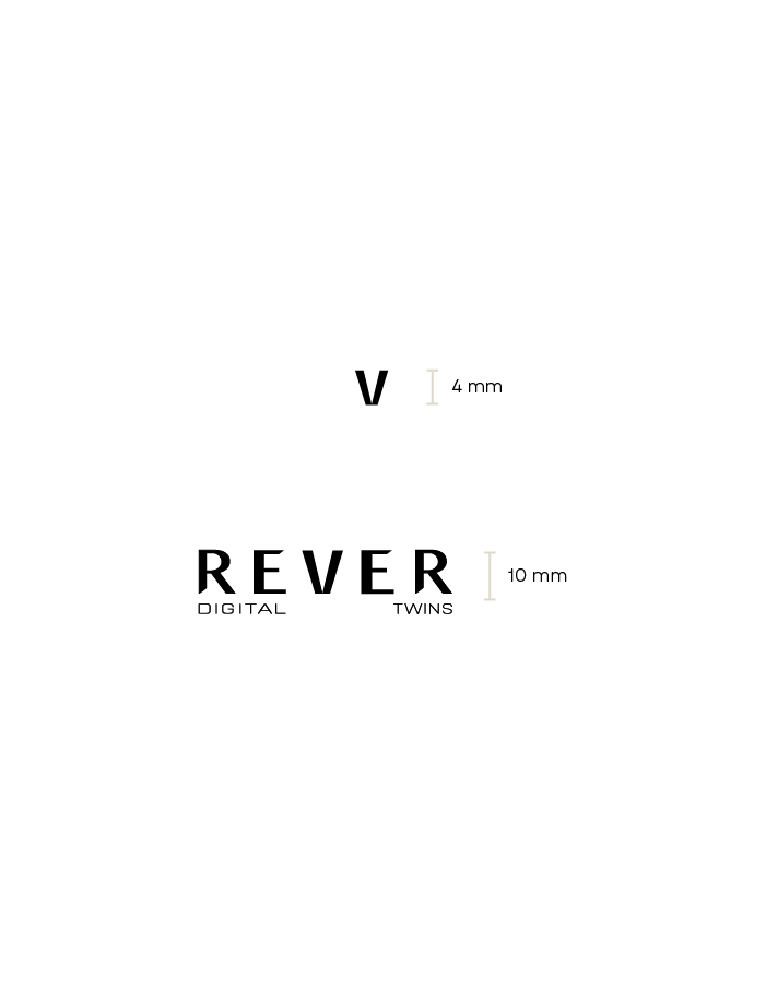 El logotipo de REVER es completamente tipográfico. Puede ser usado en todos los colores. Este logo puede ser utilizado con o sin la bajada de marca "Digital Twins" de la marca. La bajada se escribe separando ambas palabras. "Digital" empieza alineado al comienzo de la primera R y termina al final de la primera E. "Twins" empieza al final de la segunda E y termina al final de la segunda R.