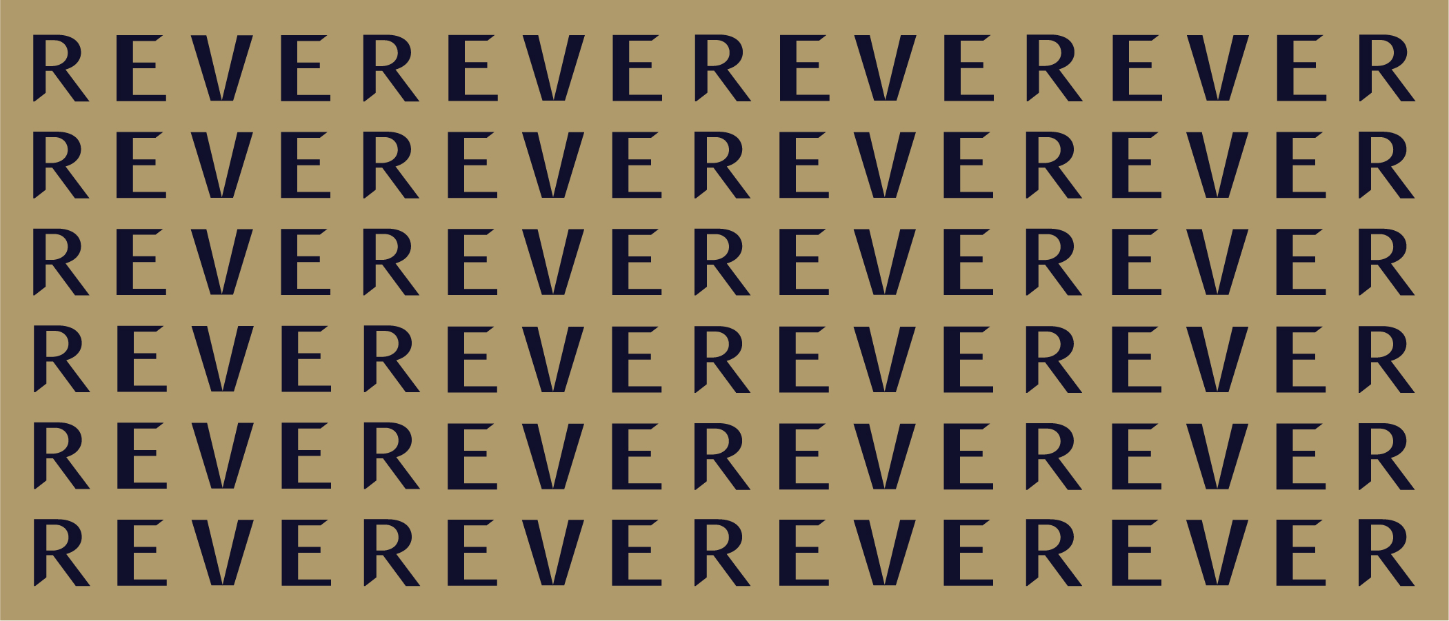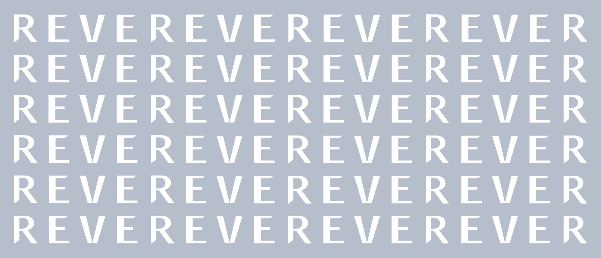 El patrón de la marca se debe diseñar usando el logotipo REVER de forma repetitiva con solo una R entre cada palabra, es decir, debe leerse "REVEREVER" y no "REVERREVER".